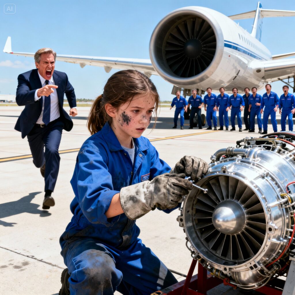 A very thin girl appeared in the hangar door, wearing a ripped dress and with her hair whipped by the wind. Her fingers were black with grease, and her eyes were fixed on the engine. The engineers laughed, and the boss, Sam, mocked her. But when she accurately described the whistling sound heard during landing and the engine’s behavior, Andrew raised his hand and said, “Give her the gloves.”