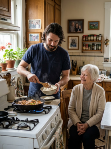 The change happens so gradually that you barely notice at first. One day you finish sweeping and see her struggling to lift a grocery bag from the porch, so you carry it in. The next week you realize the bag contains little more than canned beans, generic bread, and instant oatmeal, so on your way out you stop at the discount market and bring back chicken thighs and carrots with money you should not be spending. The week after that, she is moving so slowly you ask if she has eaten lunch. She says there is soup somewhere. There isn’t.