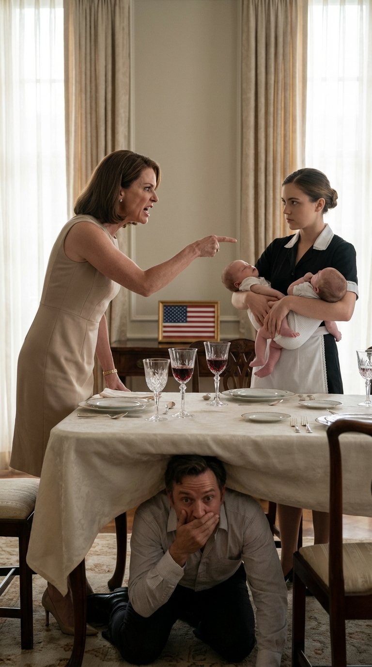 In a move of desperate, theatrical genius, Daniel crawled under the massive, heavy mahogany dining table. The tablecloth was a thick, floor-length damask that hid him perfectly. He held his breath, his heart thumping against the floorboards.