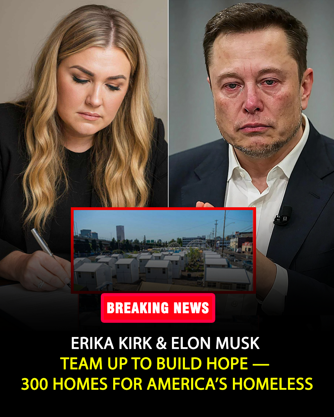The news broke quietly at first — a single press release buried beneath the noise of a busy news cycle. But within hours, it became impossible to ignore. Erika Kirk, widow of the late Charlie Kirk, had just signed a $50 million partnership with Elon Musk to build 300 homes for the homeless and forgotten.