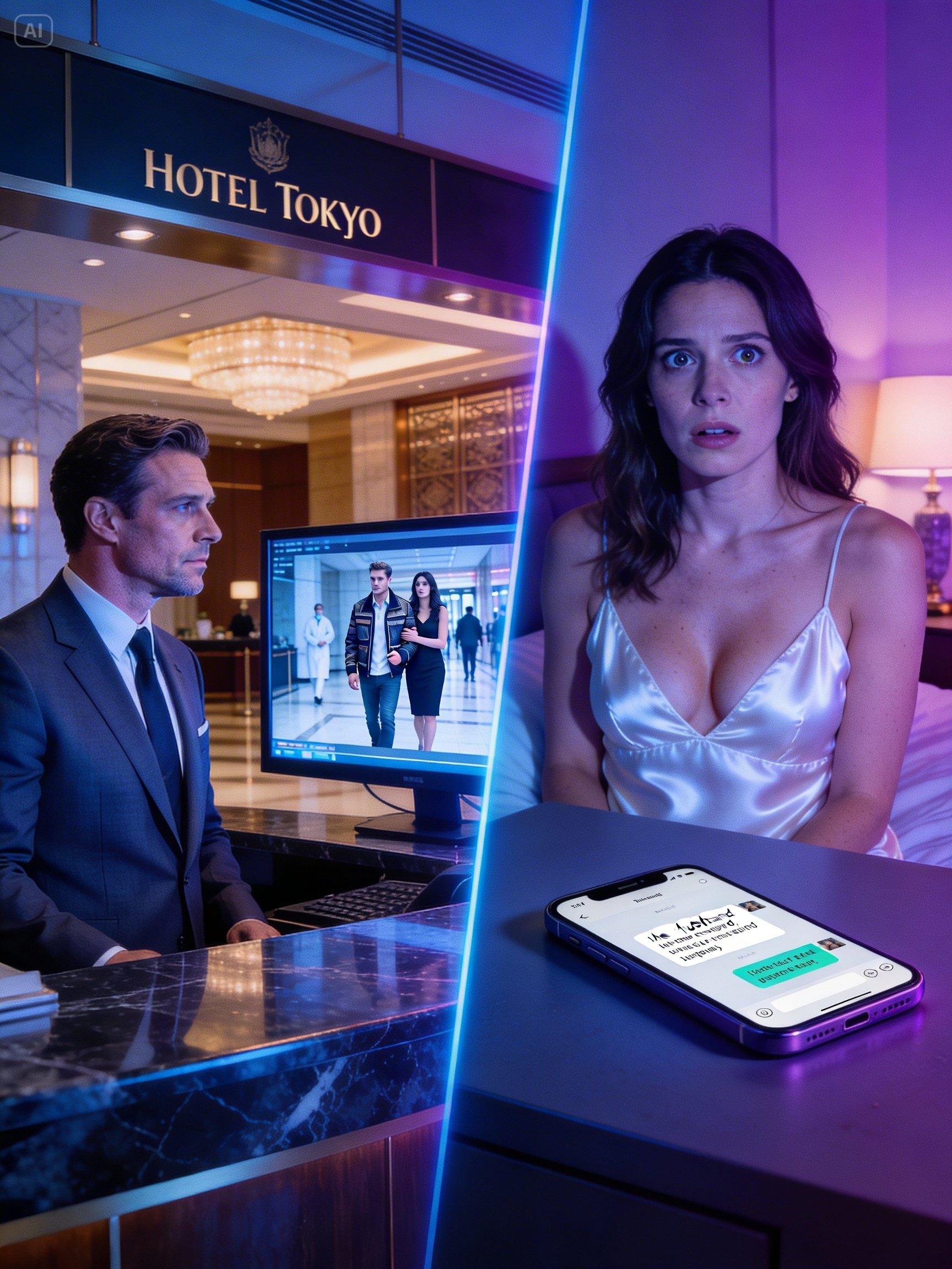 He always barked when James came home, but there was only silence, then footsteps on the stairs. Michael, someone just walked into my house. Don’t hang up. Stay on the line. James appeared in the bedroom doorway. Navy scrubs, white coat draped over his arm, that tired smile he always had after a long shift. Everything normal, everything exactly right, except my brother was watching him check into a hotel in Tokyo. right now.