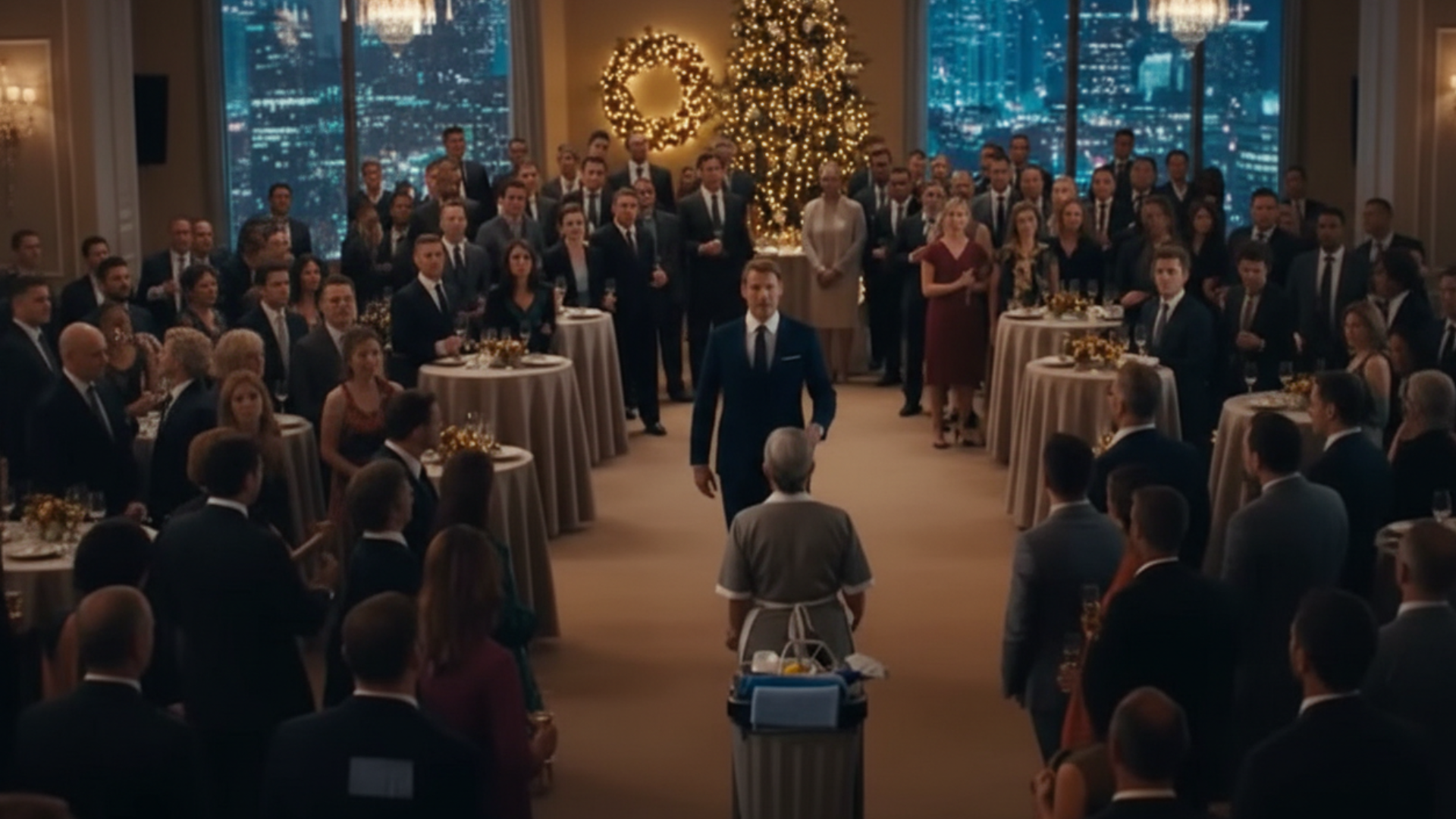 Maria pushed her cleaning cart through the crowd, emptying champagne flutes into her gray bin. She’d done this every Christmas for six months now. Before that, for thirty years as the founder’s wife.
