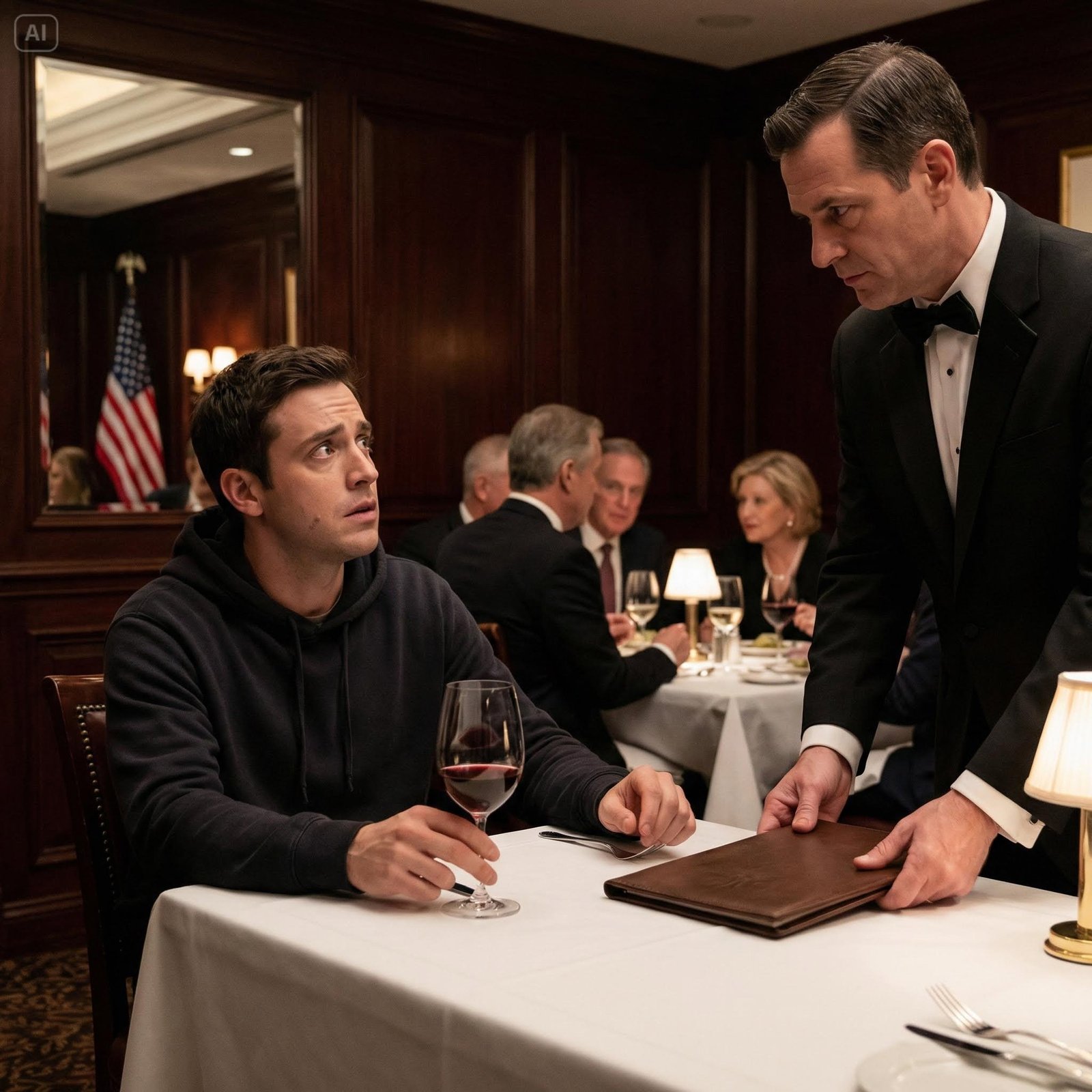 From the moment he entered, the tone was set. The hostess, a young white woman with perfect posture and a clipboard smile, scanned his clothes like they were a threat. She didn’t recognize him. That was the plan. He had chosen a plain zip-up hoodie, dark jeans, and off-brand sneakers.