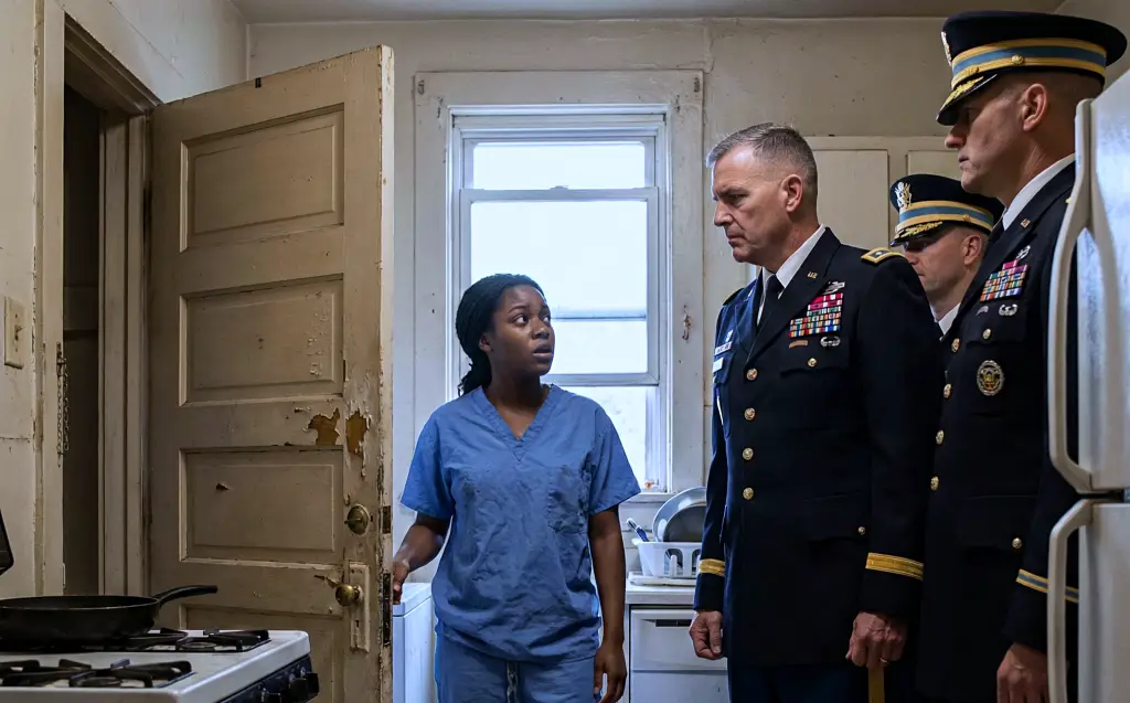 Dawn had just broken when three military officers knocked on her apartment door. They stood in dress uniforms, stiff and imposing in the dim hallway light. A colonel stood at attention on her cracked doorstep. When Aaliyah opened the door, she was still wearing her hospital scrubs, her body aching with exhaustion from a double shift. Her heart plummeted into her stomach.