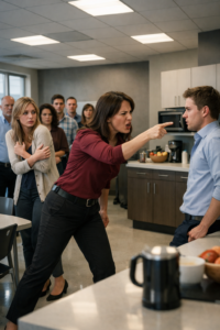He didn’t slam the door. He didn’t need to. He left behind an aftertaste of threat that lingered in the breakroom like burnt coffee.