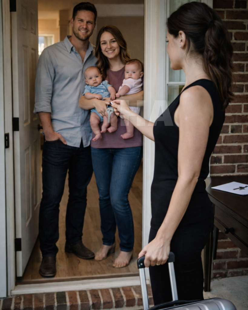 MY HUSBAND SHOWED UP AT MY DOOR WITH MY COUSIN, TWO BABIES, AND A SMUG LITTLE SMILE, THEN SAID, “SHE LIVES HERE NOW”… SO I HANDED OVER THE KEYS, SMILED BACK, AND SAID, “HOPE YOU ENJOY THE HOUSE UNTIL TOMORROW”