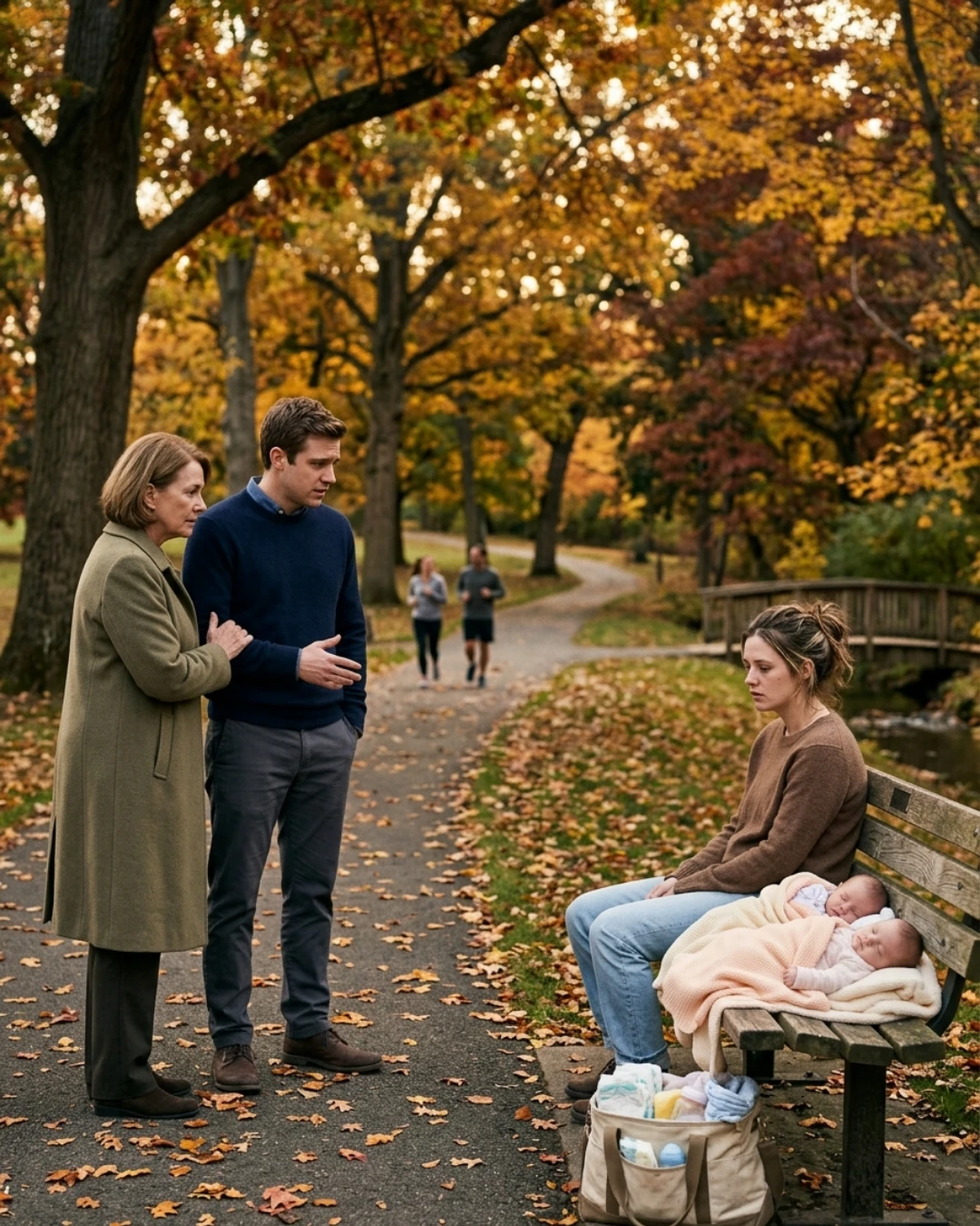 You stand there in the gold-tinged light of Riverton Park with your mother beside you, and for a moment the whole world seems to narrow to that bench, those two babies, and Clara’s exhausted face. The wind moves through the trees with a dry October whisper, and somewhere behind you a jogger passes, oblivious to the way your entire past has just stepped out from the shadows and sat down in front of you. Clara keeps one hand on the green blanket, not dramatic, not trembling, just protective in the quiet way women become when life has taught them nobody else will do it for them.